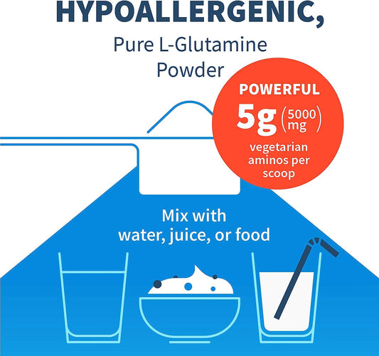 Klaire Labs L Glutamine Powder - 5000mg Free-Form & Hypoallergenic Amino Acid - Supports Muscle Recovery, Immune Support and GI Health - Non Dairy & Gluten Free, 351 G / 60 Servings