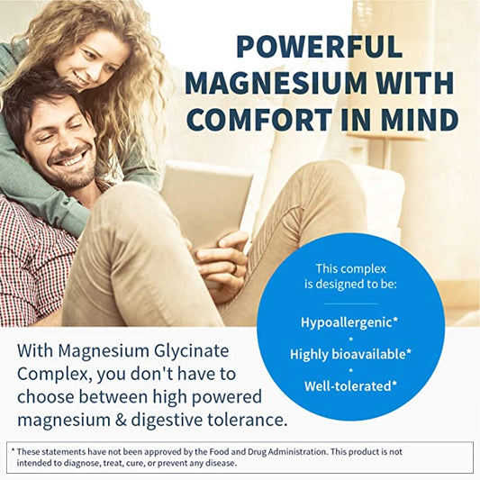 Klaire Labs Magnesium Glycinate Complex - 100mg Bisglycinate Blend to Support Bone Health & Restful Sleep - Chelated for Improved Absorption, 100 Capsules