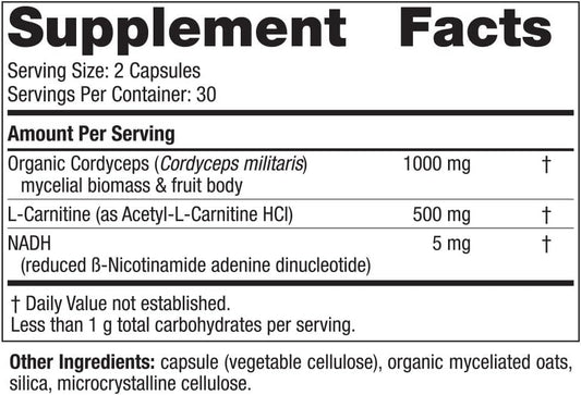 Nordic Naturals Energy Mushroom Complex, Energy & Vitality Support - Blend of Cordyceps, L-carnitine & NAD-H, 60 Capsules