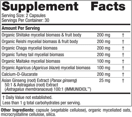 Nordic Naturals Immune Mushroom Complex, Unflavored, Adaptogenic Support, Multi-Mushroom Blend, Optimal Wellness, Non-GMO, Certified Vegan, 60 Capsules