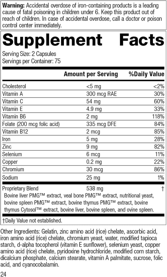Standard Process Immuplex | Daily Immune Support Supplement with Folate, Iron, Vitamin C & Vitamin A - Mineral Supplement with Antioxidant Ingredients | 150 Capsules
