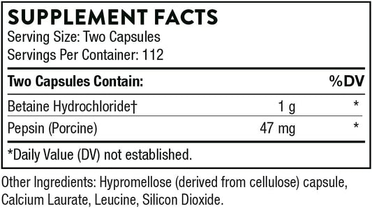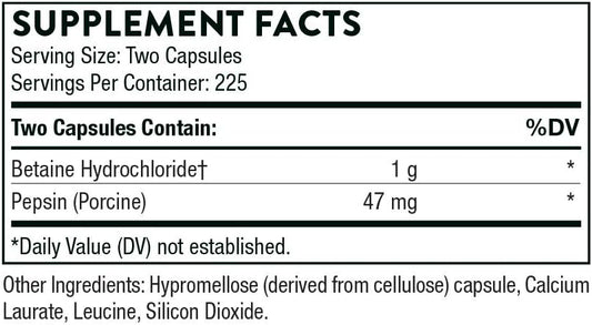 Thorne Betaine HCL & Pepsin, 225 Capsules