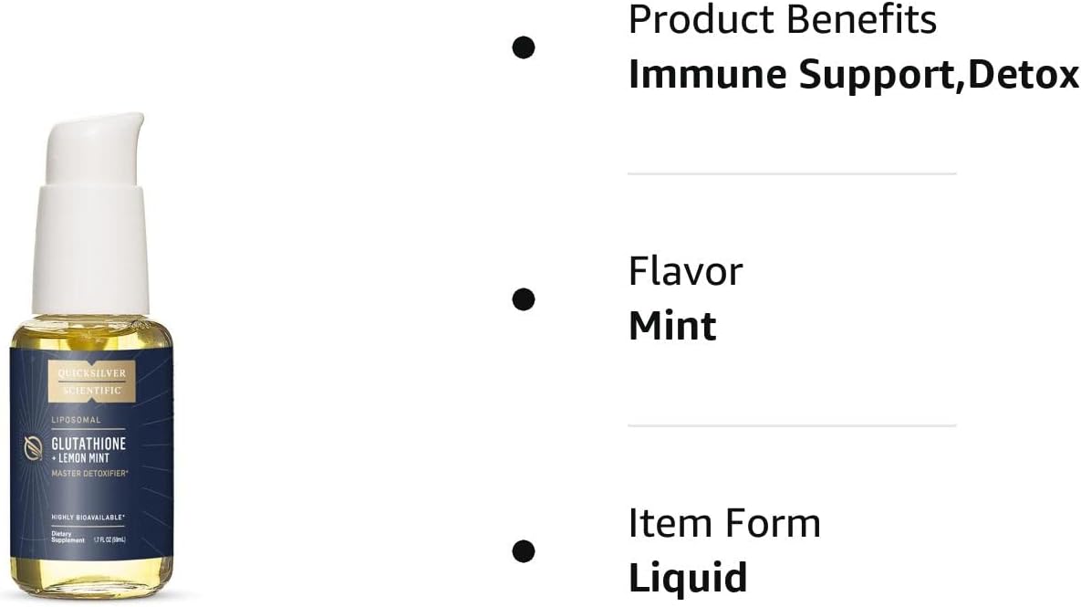 Quicksilver Scientific Liposomal Glutathione - Superior Absorption Oral Glutathione Supplement for Detox & Immune Support - 100 mg of Liquid Glutathione, Gluten Free & Non-GMO (1.7 fl oz)
