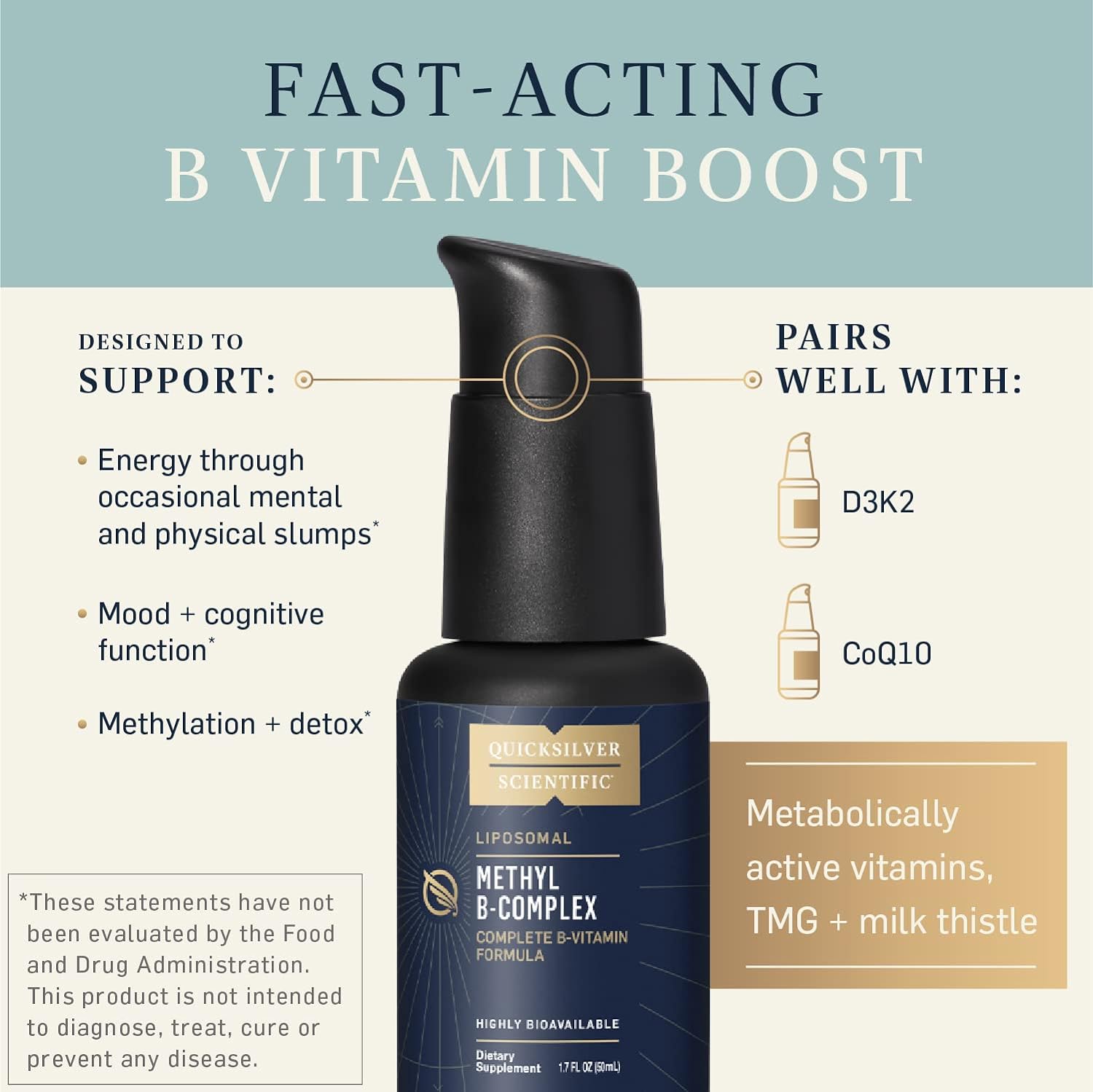 Quicksilver Scientific Methyl B Complex - Liquid Vitamin with Superior Liposomal Absorption of Vitamin B12, Folate, Vitamin B6, Riboflavin, Biotin, Pantothenic Acid, Vitamin B1, Niacin (50 ml)